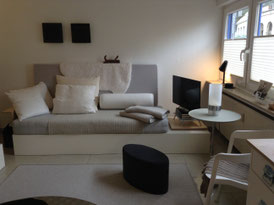Das rund 44 qm große Appartement zum Wohnen auf Zeit liegt im Erdgeschoss eines Mehrparteien - Wohnhauses.